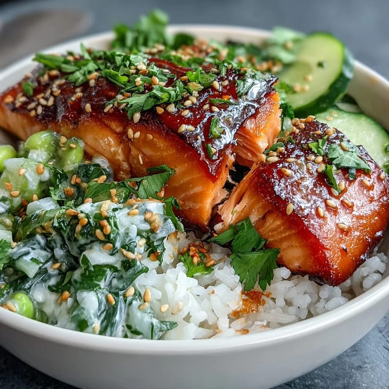 My neighbor brought over a bang bang salmon bowl one Tuesday evening, and I watched her assemble it right there on my kitchen counter with the kind of casual confidence that made me want to learn immediately. The way the creamy, spicy sauce clung to the flaky salmon while the crisp vegetables stayed bright and fresh felt like the perfect answer to those nights when I wanted something that tasted restaurant-quality but didn't require hours of work. Since that evening, this bowl has become my go-to when I need to impress someone or simply want to treat myself to something that feels indulgent without the guilt.