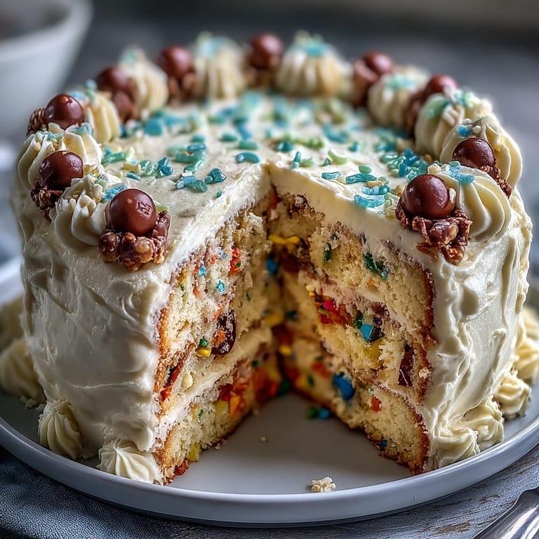 Merken Feiern Sie Cinco de Mayo mit einem wahren Hingucker: dem Cinco de Mayo Piñata Cake mit Rainbow Inside! Dieses festliche Dessert überrascht nicht nur mit seinen lebhaften, bunten Schichten, sondern auch mit einer versteckten Süßigkeitenfüllung, die beim Anschneiden wie eine Piñata herauspurzelt. Perfekt für ausgelassene Feiern und Kindergeburtstage, vereint dieser mittel-schwere Kuchen mexikanisch inspirierte Fröhlichkeit mit amerikanischem Komfort.