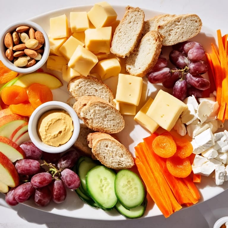 - Nüsse & Extras: 1/3 Tasse geröstete Mandeln, 1/4 Tasse Oliven, 1/4 Tasse Hummus, 2 EL Honig