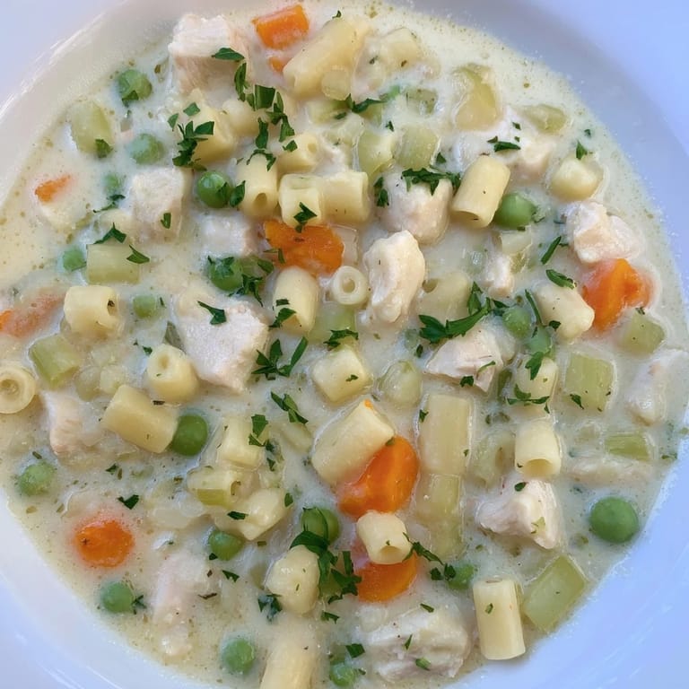 Du kannst die Suppe leicht an deine Vorlieben anpassen. Ein Schuss trockener Weißwein zur Brühe gibt eine elegante Tiefe, die ich bei besonderen Anlässen gerne hinzufüge. Für eine glutenfreie Version verwendest du einfach glutenfreie Nudeln und Mehl, funktioniert genauso gut. Wenn du es herzhafter magst, probiere geräuchertes Hähnchen oder füge etwas Speck hinzu.