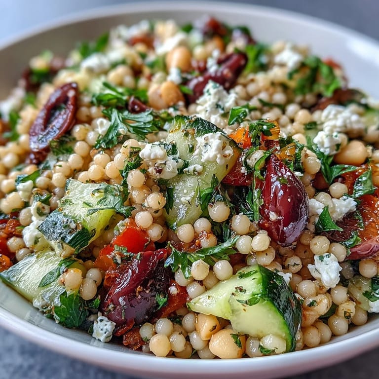 Proportionell bietet dieser Salat eine ausgewogene Mischung aus Kohlenhydraten, pflanzlichem Eiweiß und gesunden Fetten. Wenn du eine glutenfreie Version bevorzugst, kannst du den Perl couscous problemlos durch Quinoa ersetzen. Für eine rein vegane Variante lass einfach den Schafskäse weg oder verwende einen pflanzlichen Käseersatz.