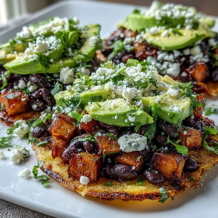 Merken An meinem Küchentisch saß ich eines Abends und starrte auf eine Süßkartoffel, eine Dose schwarze Bohnen und eine Tüte Tostada-Schalen, die ich spontan gekauft hatte. Ich hatte keine Ahnung, wie sie zusammenpassen würden, aber der Hunger war stärker als meine Zweifel. Als die Süßkartoffel im Ofen zu karamellisieren begann und dieser rauchige Duft die Küche füllte, wusste ich, dass etwas Gutes entstehen würde. Die Limette über den Bohnen zu pressen war der Moment, in dem alles Sinn ergab. Seitdem sind diese Tostadas mein Rettungsanker, wenn ich etwas Farbenfrohes und Sättigendes brauche.